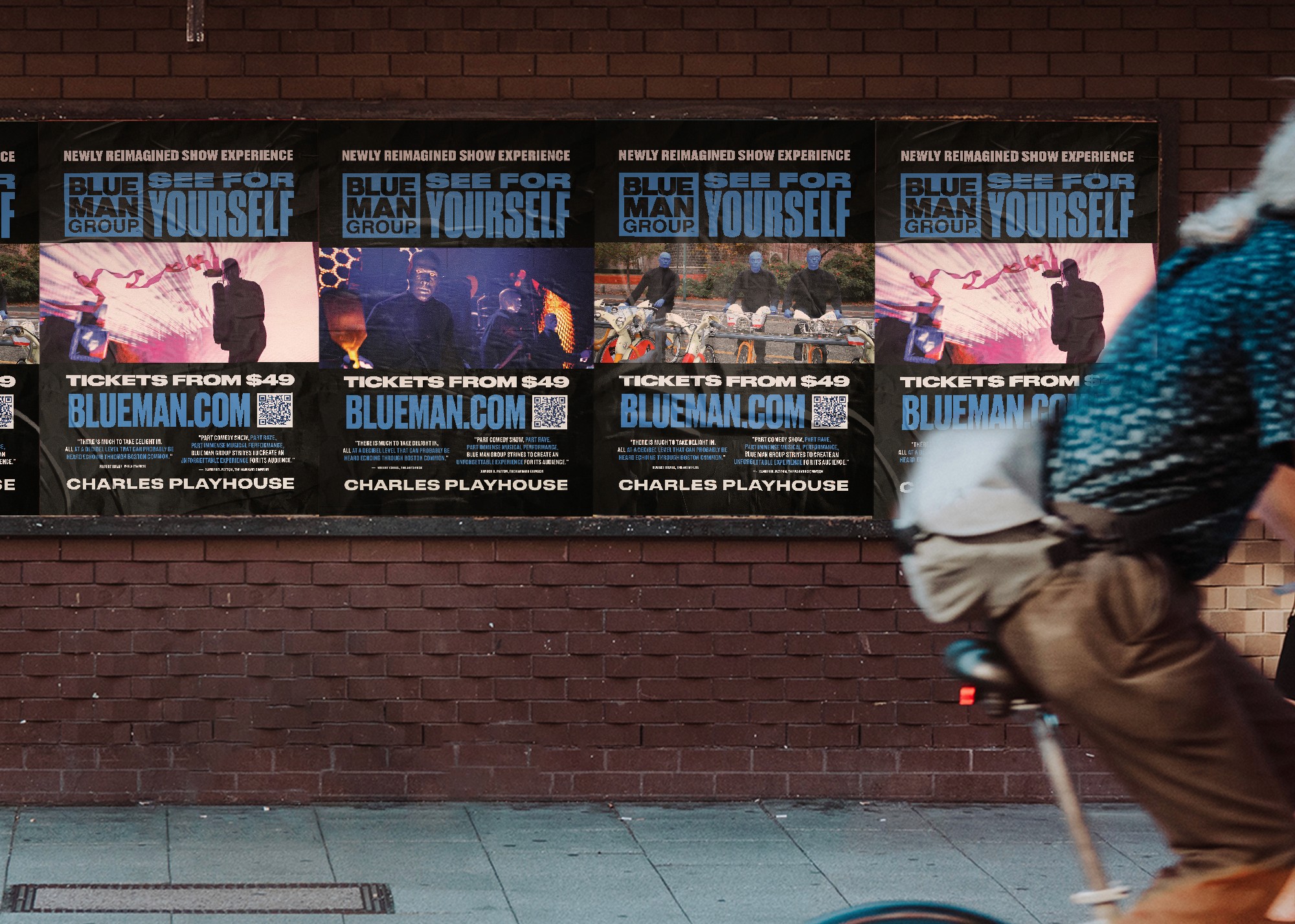 Blue Man Group got a bold new look! These designs and rebranding amplifies their signature electric energy with a fresh, modern grunge aesthetic. Expect eye-catching marketing campaigns featuring immersive, high-contrast visuals, dynamic typography, and interactive digital elements. Billboards and large-scale wraps will transform urban landscapes with striking imagery of the iconic blue performers in motion, enhanced with vibrant paint accents. Posters and print materials will embrace a grungy-punk style, reinforcing the group's avant-garde identity. This revitalized brand experience reintroduces Blue Man Group to new generations while staying true to their exhilarating, boundary-pushing performances.